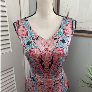 JONES NEW YORK Womens Dress Colorful Satin Paisley Midi Bohemian Spring Party 10
