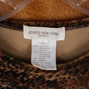 JONES NEW YORK Womens Top Large Brown Pullover Velour Tiger Stretch Animal Print