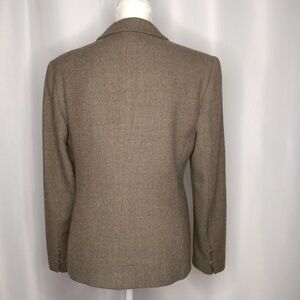 Beautiful button up worsted wool Blazer, Olive green and tan, Sz 8.