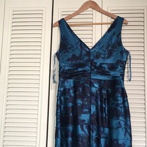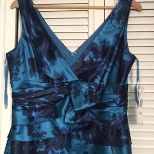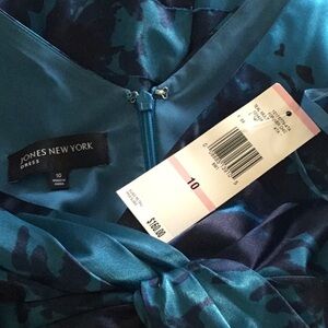 Jones New York ruffled / front bow sleeveless v-neck dress.Size 10. NWT .measurements : underarm to underarm 19”, sleeveless, length 38”. Front bow / layered . NWT . Bin 1/ 0007