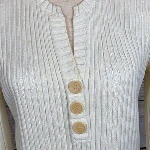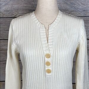 JONES NEW YORK SPORT Cotton Cream Rib Knit Sweater V-neck made in Australia M-L