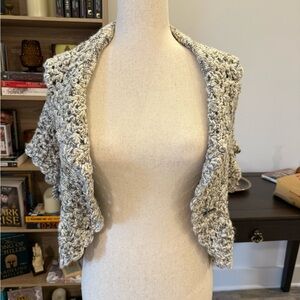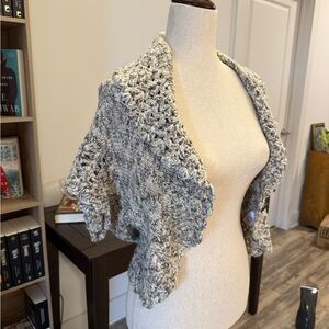 This Jones New York shrug in a sophisticated gray hue features a beautifully textured pattern on the sleeves, adding a touch of elegance to its design. The smooth knit body offers a comfortable fit, making it a versatile addition to any wardrobe. Perfect for layering, this shrug effortlessly enhances your style with its chic and refined look.