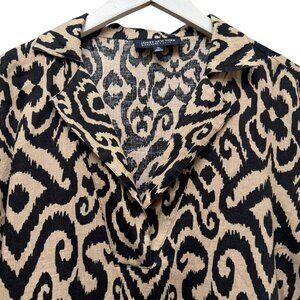 JONES NY Linen Top Plus Size 3X Black Tan Ikat Womens Tunic