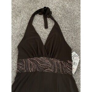 JONES New York Brown Sequin Detail Halter Empire Waist Dress Size 10 NWT