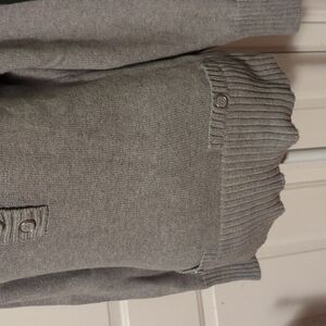 JONES New York Small Gray v-neck sweater ribbed sleeves waist faux pockets
