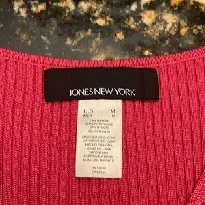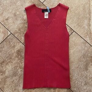 Quality clothing is what I buy. Notice the edging down the collar V-neck and down to the center …how it draws attention to all the right places. The arm holes are not too small and not so big that your bra would show through. Hugs to the body to show your form. Barely worn at all.