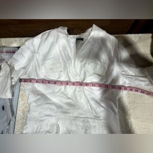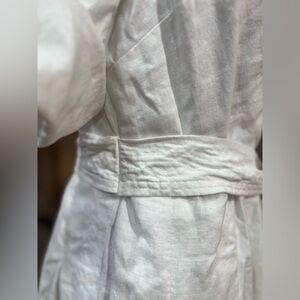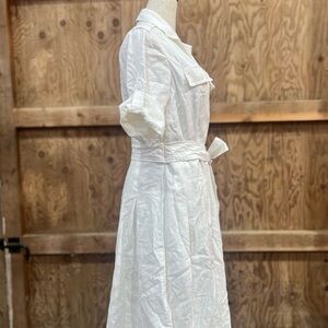 JONES WEAR DRESS Linen Blend Lined Short Sleeve Midi Dress With Belt Size 12P