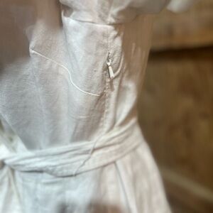 Absolutely adorable dress! Side zipper closure. Sewn in belt. Pleated. 2 front pockets.