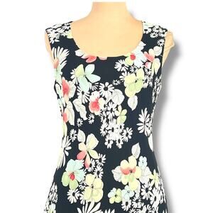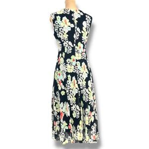 JONES WEAR DRESS Pastel Floral on Black Woven Rayon Midi Dress