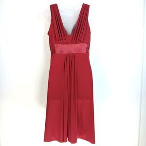 JONES WEAR Dress Women Dark Red Sleeveless V-Neck Midi Size 8 Elegant Flowy