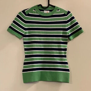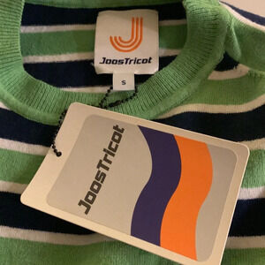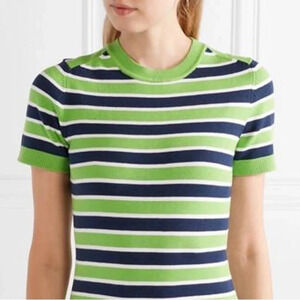 JOOSTRICOT Peachskin Short Sleeve Crew Neck in Lime Jelly Stripes