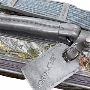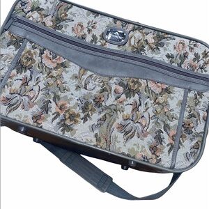 Jordache vintage tapestry/needlepoint floral suitcase with strap & handle