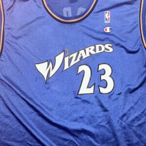 Embrace the legacy of basketball greatness with the Jordan #23 Washington Wizards Champion NBA Shirt. A must-have for any fan, this jersey celebrates the iconic Michael Jordan and his time with the Wizards. Designed for comfort and style, it's a size XL that fits true to size for a relaxed, yet sleek look.