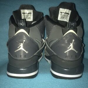 Air Jordan cool gray flights, high tops, lace up with velcro safety straps.