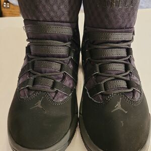 JORDAN GRADE SCHOOL BOYS' MAX AURA SNEAKER BOOT. SIZE 2Y COLOR BLACK LACE UP Jordan Grade School Boys' Max Aura features Genuine and synthetic upper delivers flexibility and durability.Heel Max Air unit delivers superior impact absorption.Foam midsole cushions each step and springs feet into the next step.Rubber outsole offers traction on and off the court.The Jordan Max Aura takes its design inspiration from two icons in the shoe industry,THIS ITEMS IS PRE-OWNED EXCELLENT CONDITION YOU MIGHT MISTAKE FOR NEW CHECK THE PIC