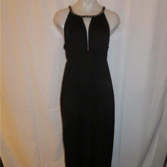 WOMENS JORDAN TAYLOR COLLECTION - BLACK STRETCH - KEY HOLE - RACERBACK - GOLD BLACK BRAIDED STRAPS - MAXI DRESS