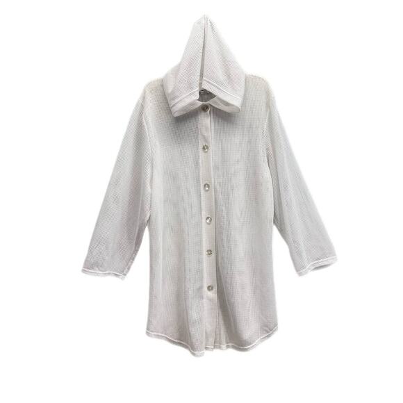 JORDAN TAYLOR Swim Cover Up L Dress Mesh Hooded Long Sleeve Button Down