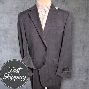 JOS A BANK Mens 2 Piece Suit Blazer Jacket 44R Pant 39W Unhemmed Gray 100% Wool