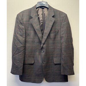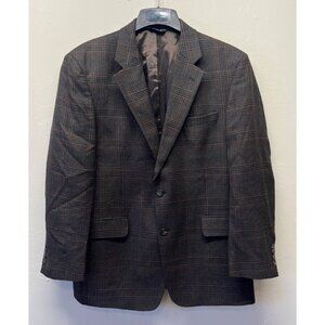 JOS A BANK Mens 44R Wool Blazer Sport Coat Jacket Suit Windowpane Plaid Brown