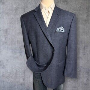 JOS A BANK Mens 52R Navy/Blue Plaid Wool Blazer Sport Coat Two Button Jacket