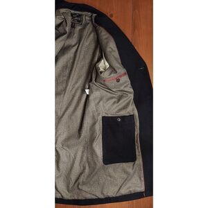 JOS A BANK RESERVE TOPCOAT, Size 38 Short, Navy Blue w/ Brown Trim NWOT