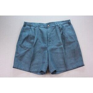 These JOS A BANK men's shorts in size 40 are from the 100% Linen Pleated Chino Travelers Collection. The blue color and solid pattern make them versatile for various occasions such as travel, casual wear, and workwear. With features like easy care, breathable fabric, and pockets, these shorts are perfect for summer, fall, and spring seasons. The high rise and regular fit provide comfort and style, while the pleated front adds a touch of sophistication. Made in China, these shorts are machine washable for convenience.
