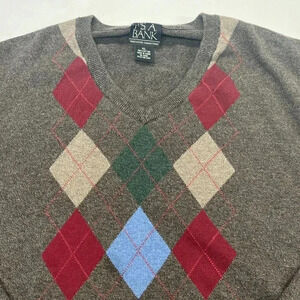 JOS A BANK Sweater Men XL Cotton Executive Collect Argyle Long Sleeve Brown