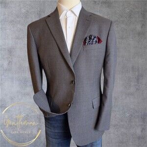 JOS A BANK Tailored Fit Mens 44R Gray/Blue Wool Blazer Sport Coat 2-Button Jacke