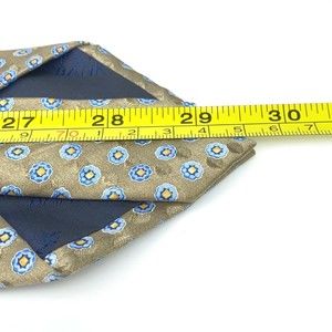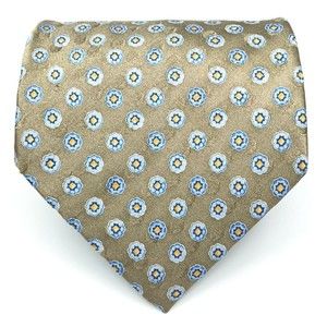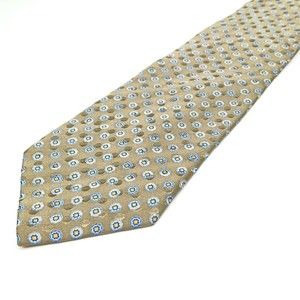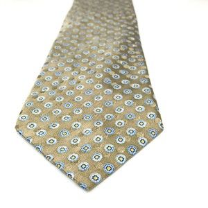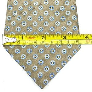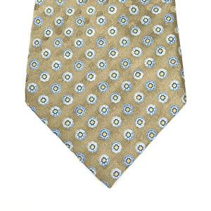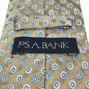 JOS A BANK Tie Grayish Beige Blue Yellow Floral 100% Silk Hand-sewn Necktie 59"