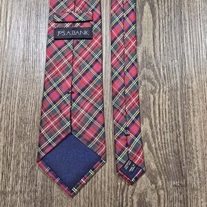 JOS A BANK Tie Mens Red Plaid Silk Necktie 68"x3.5" Luxury Preppy Holiday Office