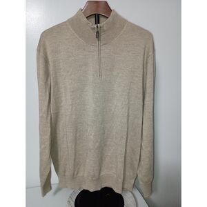 JOS A. Bank, Signature Collection, Beige 1/4 Inch Zipper Italian Merino Wool Sweater, Men's Size XL