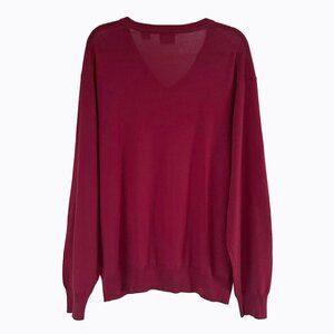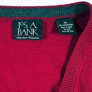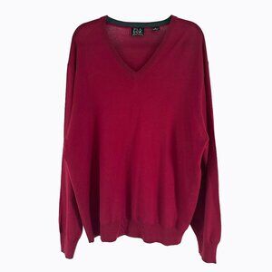 JOS A Bank Sweater SzXL 100% Merino Wool Burgundy Red Long Sleeve V-Neck Classic