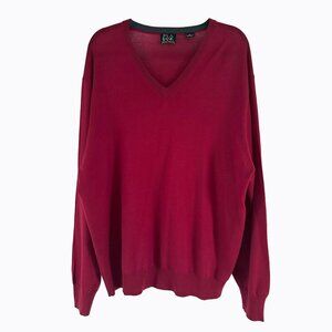 JOS A Bank Sweater SzXL 100% Merino Wool Burgundy Red Long Sleeve V-Neck Classic