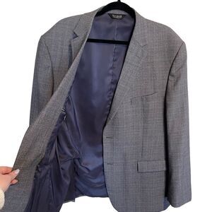 JOS A BANK- Sport Coat Men Jacket Gray Plaid Blazer 100% Wool, 48Long