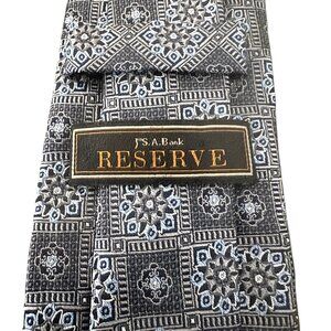 JOS.A. Bank Reserve Mens 100% Silk Necktie Geometric Pattern In Black & Gray