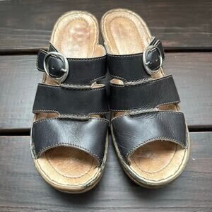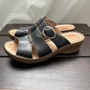 JOSEF SEIBEL Black 3 Strap Wedge Slip On Sandals Ladies 39 Size 8.5