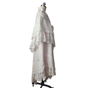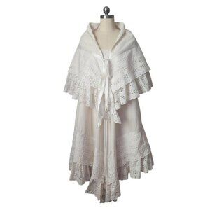 JOSEFA 70's Boho Bridal Eyelet Ruffle Folk Style Prairie dress with shawl/cape