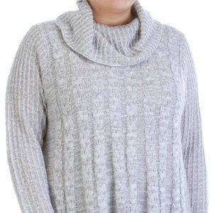 This beautiful sweater is super soft and features a nice broken neck that doesn't hug the neck tightly. It is grey and retailed at $78. This sweater is perfect with leggings for fall and winter.