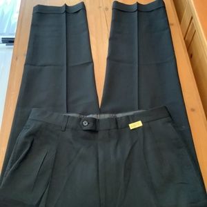 100% WOOL. SOLID BLACK. 34 W, 32 L. Side and back pockets. BELT LOOPS. EXCELLENT, LIKE NEW CONDITION.