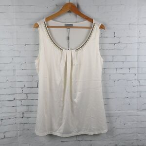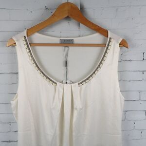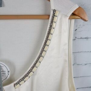 JOSEPH A CREAM SLEEELESS ROUND NECK TOP WITH BEADED DETAIL SIZE LARGE NWT