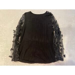JOSEPH A Rainah Pointe Knit Lace Top Black Women's M Sheer Long Sleeve Flower