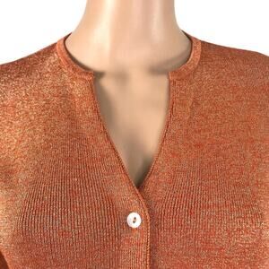 JOSEPH A. Silk/Metalic Cardigan Women L Orange Retro Classic Old Money Y2K NWT