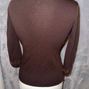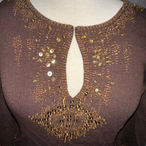 JOSEPH A Viscose BROWN & GOLD DAZZLE SEQUIN Sweater Women Sz M