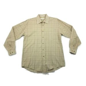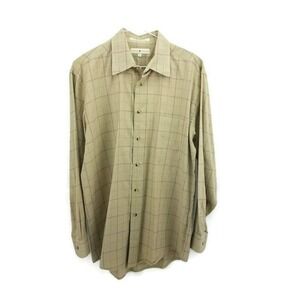 JOSEPH ABBOUD Mens Dress Shirt Beige Check Long Sleeve Button Front Medium