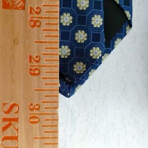 JOSEPH ABBOUD Necktie Tie Imported Silk Blue Yellow Flowers and Squares Designer
