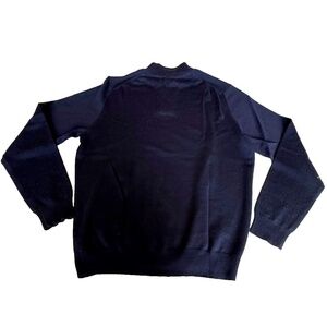 The JOSEPH & LYMAN Italian Merino Wool 1/4 Zip Mock Neck Sweater in Navy Blue is a stylish and practical addition to any man's wardrobe. Made from warm wool knit fabric, this sweater features a classic mock neck neckline and long sleeves, perfect for the colder seasons of winter, fall, and spring. The 1/4 zip detail adds a modern touch to the pullover style, making it versatile for everyday wear or more dressed-up occasions. With a regular fit and high-quality construction by the reputable brand Joseph & Lyman, this sweater is sure to keep you comfortable and looking sharp. Sweater is in excellent, pre-loved condition!
