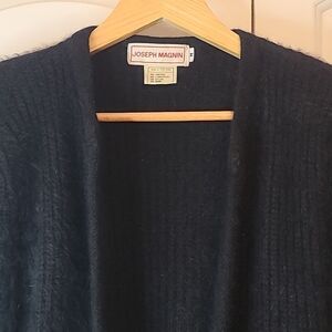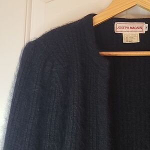 JOSEPH MAGNIN Angora Vintage Black Ribbed Cardigan Sweater Size M