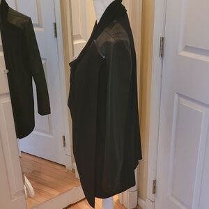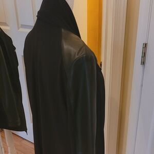 This piece by Joseoh Ribcoff is simply fabulous! It can be worn over a top/sweater as outerwear or simply as a tunic with leggings. The shoulders and sleeves are done in leather. It features a flattering cowl neck with a zipper to the left. There are zip pockets as well. They retailed for over $200. I wore it with cranberry glossy leggings and black booties. Both tunics are in pristine condition.