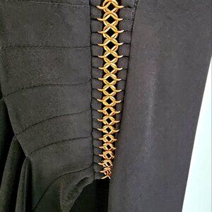 Joseph Ribkoff Black Ling sleeve draped midi length dress.