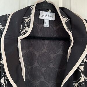JOSEPH RIBKOFF Black and Crème Geo Pattern Open Jacket Sz 8